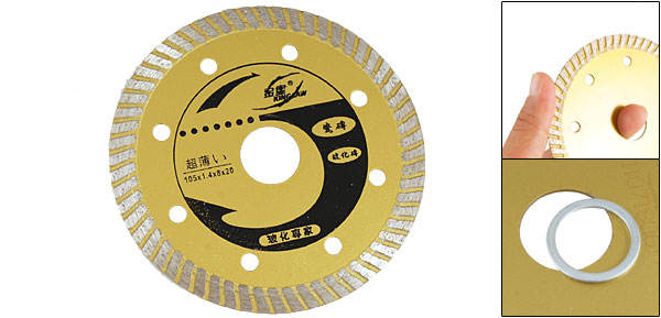 Product Name Saw Blade Diameter 105mm /4 1/8" Segment Quantity 8 Thickness 1mm / 0.04" Arbor Hole Diameter 16mm / 0.63'' Material Metal Color Gold Tone Net Weight 88g Package Content 1 x Saw Blade