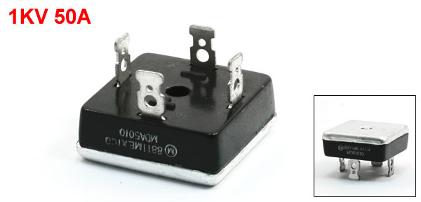 Product Name Bridge Rectifier Model MDA5010 Voltage 1KV Current 50A Pitch Distance 26 x 26mm/ 1" x 1"(L*W)