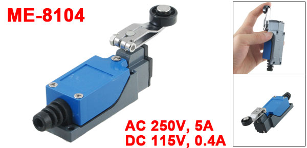 Product Name Limit Switch Model No. ME-8104 Actuator Action Momentary Actuator Type Rotary Roller Lever Contact Type 1NC + 1NO(SPDT) Rated Voltage & Current AC 250V, 5A