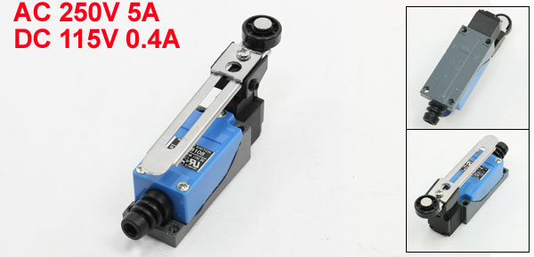 Product Name Limit Switch Model No. ME-8108 Actuator Action Momentary Actuator Type Rotary Adjustable Lever Arm with Roller Contact Configuration 1NO,1NC(SPDT) Rated Voltage AC 250V 5A, DC 115V 0.4A Roller Dimension 1.8 x 0.7cm / 0.7 x 0.25" (D*T) Lever Arm Length 10.5cm / 4.1" Fixing Thread Diameter 0.4cm / 0.16" Total Size 12.3 x 2.9 x 5.1cm / 4.8" x 1.1" x 2" (L*W*H) Mounting Size 56 x 21mm/ 2.2" x 0.8" (L*W) Material Rubber, Plastic & Metal Main Color Gray, Silver Tone, Black Net Weight 89g Package Content 1 x Limit Switch