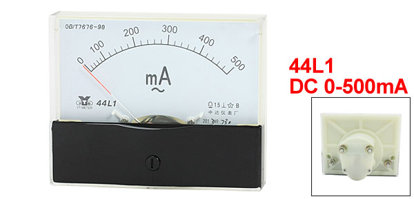 Product Name Analog Ammeter Type 44L1 Measuring Current Range AC 0-500mA Accuracy 1.5 Operating Temperature -20 ~ 40 °C Insulation Force AC 2KV, 50Hz Panel Size(Approx) 100 x 80 x 12mm / 3.9" x 3.1" x 0.47"(L*W*T) Thread Size Big One: 4 x 11mm / 0.16" x 0.43"(D*L)