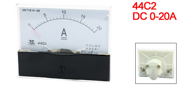 Product Name Analog Voltmeter Type 44C2 Measuring Current Range DC 0-20A Accuracy 1.5 Operating Temperature -20 ~ 40 °C Insulation Force AC 2KV, 50Hz Panel Size(Approx) 100 x 80 x 12mm / 3.9" x 3.1" x 0.47"(L*W*T) Thread Size Big One: 4 x 11mm / 0.16" x 0.43"(D*L)
