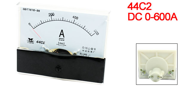 Product Name Analog Ammeter Type 44C2 Measuring Current Range DC 0-600A Accuracy 1.5 Operating Temperature -20 ~ 40 °C Insulation Force AC 2KV, 50Hz Panel Size(Approx) 100 x 80 x 12mm / 3.9" x 3.1" x 0.47"(L*W*T) Thread Size Big One: 4 x 11mm / 0.16" x 0.43"(D*L)