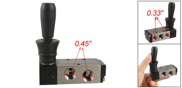 Product Name Hand Pull Valve Model 4H210-08 Type 5 Ways 2 Positions Material Metal, Plastic Operating Pressure 1.5 ~ 8 kgf/cm2 Temprature Rise 60°C Port Inner Diameter(Approx.) 8.5 x 11.5mm/ 0.33" x 0.45" Handle Size 4.3 x 1.5cm/ 1.7" x 0.6" Total Size (Approx.) 7.7 x 3.4 x 9cm/ 3" x 1.3" x 3.5" (L*W*H) Color As Picture Shown Weight 162g Package Content 1 x Hand Pull Valve - Reviews