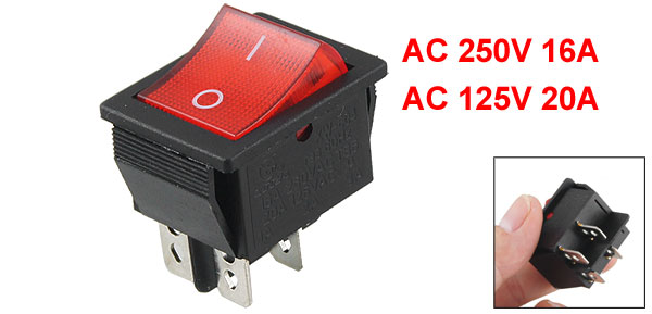Product Name Rocker Switch Poles DPST Terminals 4 Pin (On-Off) Mounted Hole Size 31 x 22 mm/ 1.2" x 0.9"(L*W) Rating Voltage AC 250V 16A