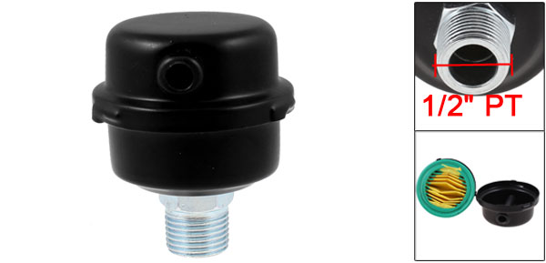 Product Name Muffler Male Thread 1/2" PT Exhaust Hole Diameter 7.5mm / 0.3" Total Size 7.5 x 6.3cm / 3" x 2.5" (H*Dia) Color Black Material Sponge, Metal Weight 135g Package 1 x Muffler - Reviews