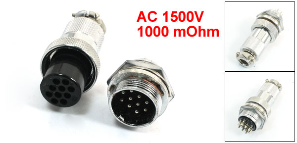 Product Name Aviation Connector Plug Model DF20B Rated Current / Voltage 15A / 250V AC Withstand Voltage AC 1500V Insulation Resistence 1000 mOhm Male Thread Diameter 19mm/ 0.75" Hole Thread Inner Dia. 8mm/ 0.31" Pin Quantity 10 Pin Total Length 57mm/ 2.2" Material Metal Color Silver Tone Weight 44g Package 1 x Aviation Connector Plug