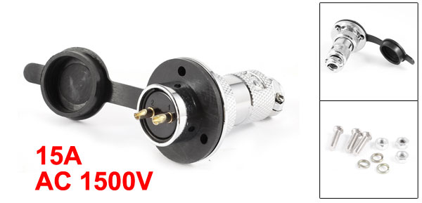 Product Name Aviation Connector Plug Model GX20-2 Rated Current 15A Opreation Limit Voltage AC 250V.rms Withstand Voltage AC 1500V Insulation Resistence >1000 mOhm Contact Resistance < 3 mOhm Contact Diameter 20mm / 0.78" Pin Quantity 2 Pin Flange Diameter 35mm / 1.4" Flange Mounting Hole Dia 5mm / 0.12" Total Length 55mm/ 2.2" Material Metal, Plastic Color Silver Tone,Black Weight 53g Package 1 x Aviation Connector Plug