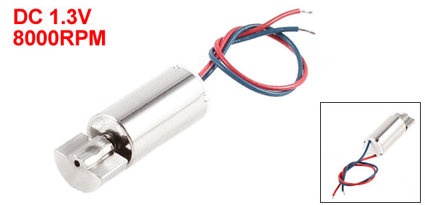 DetailsMetal Housing 6mmx12mm Micro Coreless Vibration Motor DC 1.3V 8000RPM 70mA  Product Name DC Motor Working Voltage 0.9-1.6V No-load Current 70mA Rated Voltage DC 1.3V Output Speed 8000RPM Motor Size 6 x 12mm/ 0.24" x 0.47"(D*H) Shaft Diameter 6mm Shaft Length 4mm/ 0.16" Main Color Silver Tone Material Metal Weight 4g Package 1 x DC Motor