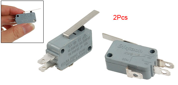 Product Name Micro Switch Model No. KW9-3Z-01 Actuator Type Metal Lever Power 15A(6A) 250V AC, 0.6A 125V DC, 0.3A 250VDC, 15A 125V AC Switch Body Size(Each) 3 x1.6 x 1cm/1.1" x 0.6" x 0.4" (L*W*H) Fixing Holes Dia. 0.3cm/0.1" (Approx) Lever Size 2.7 x 0.4cm/1" x 0.15"(L*W) Material Plastic & Metal Color Gray & Silver Tone Net Weight 17g Package Content 2 x Micro Switch - Reviews