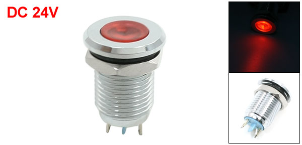 Protduct Name Indicator Lamp Light Color Red External Material Metal Voltage Power DC 24V Mounting Hole Diameter 12mm/ 0.47" Pin Size 4 x 2mm/ 0.16" x 0.08"(L*W) Total Size 23 x 15mm/ 0.9" x 0.6" (H*Top Dia) Shell Color Silver Tone Net Weight 5g Package 1 x Indicator Lamp - Reviews