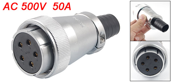 Product Name Circular Connector Model WS40-5 Contacts Pin Number 5 Contacts Pin Diameter 3.5mm/0.14'' Working Voltage AC 500V Working Current 50A Withstand Voltage AC 1500V Contact Resistance 0.5 MOhm Insulator Resistance 2000 MOhm Fit Cable Outside Dia. 17mm/0.67'' Overall Size 49.5 x 107mm/1.9'' x 4.2'' (D*L) Material Metal, Plastic Color Silver Tone, Black Weight 257g Package 1 x Circular Connector - Reviews