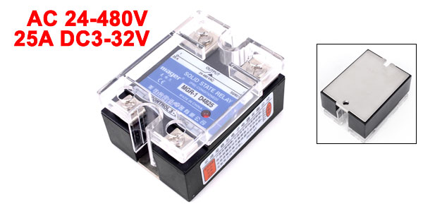 Product Name Solid State Relay Model No. MGR-1 D4825 Material Metal, Plastic, Electronic Parts Frequency 50/60Hz Load Current 25A Load Voltage AC 24-480V Control Voltage DC 3-32V Mounting Hole Diameter 4.4mm / 0.17" Total Size (Approx.) 58 x 45 x 32mm / 2.3" x 1.8" x 1.26" (L*W*T) Net Weight 82g Package Content 1 x Solid State Relay - Reviews