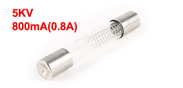 Product Name Fuse Tube Fit for Microwave Oven Material Glass, Metal Voltage 5KV Ampere 800mA(0.8A) Size 6 x 40mm / 0.24" x 1.6" (D*L) Weight 2g Package 1 x Microwave Oven Fuse Tubes - Reviews