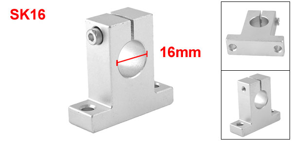 Product Name Linear Shaft Support Model No. SK16 Material Aluminum Alloy Bore 16mm Clamping Bolt M2 Recommended Mounting Bolt M5.3(not included here) Mounting Hole Distance 36mm/1.4"(from center to center) Size 48 x 16 x 45mm / 1.89" x 0.63" x 1.7"(L*W*H) Color Silver Tone Net Weight 48g Package Content 1 x Linear Shaft Support - Reviews