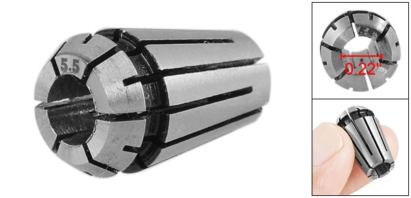 Product Name Spring Collet Model No. ER11-5.5 Clamping Range 5.5-5.0mm/ 0.22"-0.2" Clamping Diameter 5.5mm/ 0.22" Overall Size 11.5 x 18mm/0.45" x 0.7"(Dia*Length) Material Stainless Steel Color Silver Tone Net Weight 6g Package Content 1 x Spring Collet - Reviews