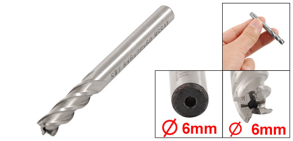 Product Name End Mills Cutter Material HSS-AL Color Gray Cutting Dia 6mm/15/64" Cutting Depth 20mm/0.787" Shank Diameter 6mm/15/64" Total Length 65mm/2.559" Weight 15g Package Content 1 x End Mills Cutter - Reviews