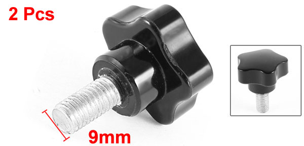 Product Name Star Knob Type Screw On Head Diameter 38mm / 1.5" Thread Length 20mm / 0.8" Thread Diameter 9mm / 0.35" Total Height 46mm / 1.8" Material Metal & Plastic Color Silver Tone & Black Weight 88g Package Content 2 x Star Knob - Reviews