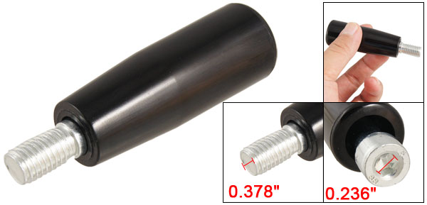 Product Name Revolving Handle Material Metal, Plastic Overall Size(Approx) 8.2 x 2.3cm / 3.2'' x 0.9'' (L*D) Hex Socket Size(Approx) 0.6cm / 0.236" Thread Dia(Approx) 0.96cm / 0.378" Color Black, Silver Tone Weight 74g Package Content 1 x Revolving Handle - Reviews