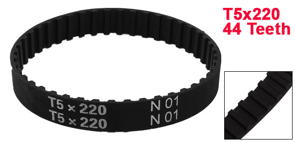 Product Name Timing Belt Model T5x220 Number of Teeth 44 Pitch 5mm / 0.2" Belt Width 10mm / 0.4" Pitch Line Length 220mm/ 8.7" Material Rubber Color Black Weight 7g Package Content 1 x Timing Belt - Reviews