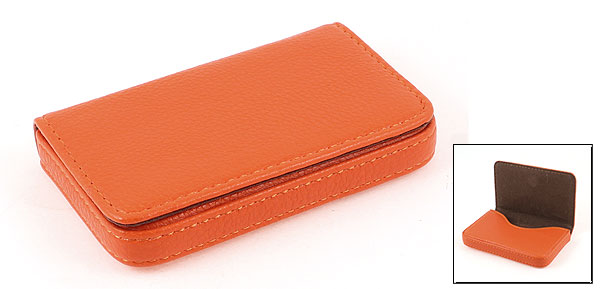 Mini Faux Leather Flannel Lining Flap Business Card Storage Holder Orange