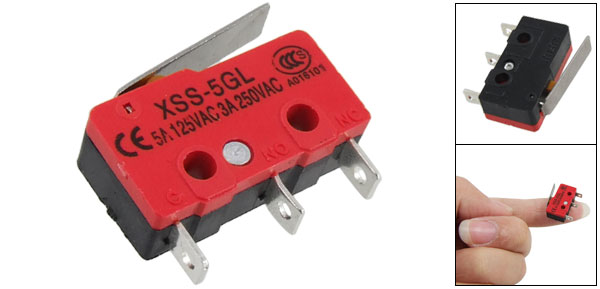 Product Name Microswitch Model XSS-5GL Material(External) Plastic & Metal Color Black & Red Overall Dimension 2 x 1 x 0.6cm/0.8 x 0.4 x 0.23"(L*W*H) Pin Length 0.4cm/0.16" Voltage Rating 5A 125VAC, 3A 250VAC Weight 2g Package Content 1 x Microswitch - Reviews