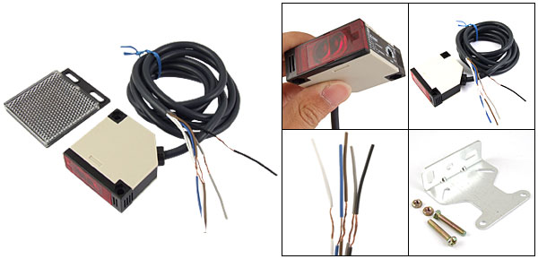 Size 5 x 5 x 1.8cm / 3.1" x 3.1" x 0.7" (L*W*H) Reflector Panel Size 6 x 5 x 0.7cm/ 2.4'' x 2'' x 0.3'' (L*W*T) Cable Length 1.4m/ 55" Weight 158g Indicator Light Color Red Material Plastic, Metal Color Black, Gray Package Content 1 x Photoelectric Switch 1 x Reflector Panel 1 x Mounting Bracket(with screws,nut) - Reviews