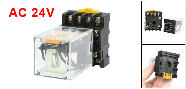 Product Name Electromagnetic Relay Model No. MK3P-I Socket Model No. PF113A Coil Voltage AC 24V Contact Capacity 5A/10A 250VAC /28VDC Type 3PDT Number of Terminals 11 Mount Rail Type 35mm DIN Rail Fixing Mount Hole Size 5 x 4.5mm/0.2" x 0.2"(L*W) Total Size (Approx.) 51 x 43 x 82mm/2" x 1.7" x 3.2"(L*W*H) Shell Material Plastic Main Color Black, Clear Net Weight 127g Package Content 1 x Electromagnetic Relay - Reviews