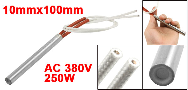 Product Name Cartridge Heater Material Stainless Steel, PVC, Nylon Rated Voltage AC 380V Power 250W Heater Size (Approx.) 10 x 100mm / 0.39" x 3.9" (D * L ) Wire Length (Approx.) 33cm / 13" Color Silver Tone, Red, White Weight 40g Package Content 1 x Cartridge Heater - Reviews