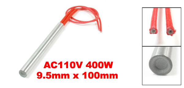 Product Name Cartridge Heater Material Stainless Steel, PVC, Nylon Rated Voltage AC 110V Power 400W Heater Size (Approx.) 9.5 x 100mm / 0.37" x 3.9" (D * L ) Wire Length(Approx.) 26cm / 10.2" Color Silver Tone, Red Net Weight 35g Package Content 1 x Cartridge Heater - Reviews