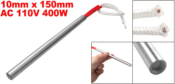 Product Name Cartridge Heater Material Stainless Steel, PVC, Nylon Rated Voltage AC 110V Power 400W Heater Size (Approx.) 10 x 150mm / 0.394" x 5.9" (D * L ) Wire Length(Approx.) 26cm / 10.2" Color Silver Tone, White Weight 58g Package Content 1 x Cartridge Heater - Reviews