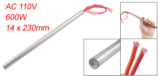 Product Name Cartridge Heater Material Stainless Steel, PVC, Nylon Rated Voltage AC 110V Power 600W Heater Size (Approx.) 14 x 230mm/ 0.55" x 9" (D * L)