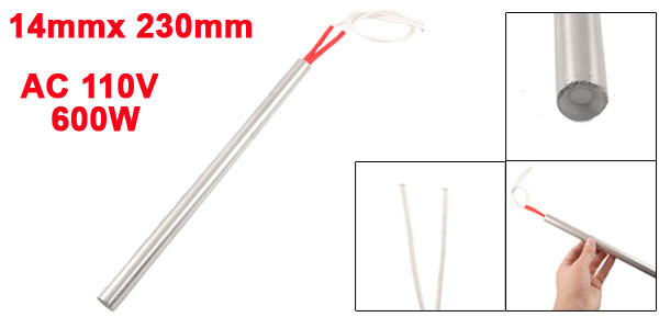 Product Name Cartridge Heater Material Stainless Steel, PVC, Nylon Rated Voltage AC 110V Power 600W Heater Size (Approx.) 14 x 230mm/ 0.55" x 9.1" (D * L)