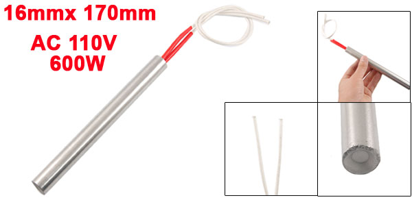 Product Name Cartridge Heater Material Stainless Steel, PVC, Nylon Rated Voltage AC 110V Power 600W Heater Size (Approx.) 16 x 170mm/ 0.63" x 6.7" (D * L)