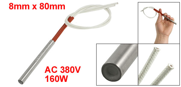 Product Name Cartridge Heater Material Stainless Steel, PVC, Nylon Rated Voltage AC 380V Power 160W Heater Size (Approx.) 8 x 80mm/ 0.31'' x 3.1“ (D * L)