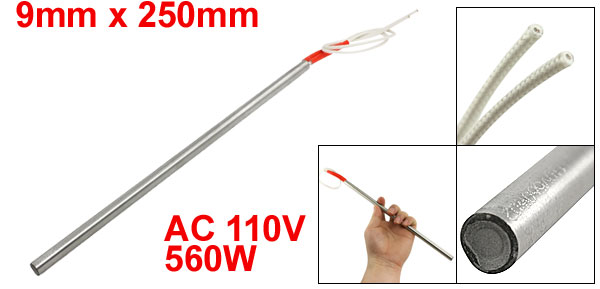 Product Name Cartridge Heater Material Stainless Steel, PVC, Nylon Rated Voltage AC 110V Power 560W Heater Size (Approx.) 9 x 250mm / 0.35" x 9.8" (D*L) Wire Length (Approx.) 29cm / 11.4" Color Silver Tone, Red, White Weight 71g Package Content 1 x Cartridge Heater - Reviews