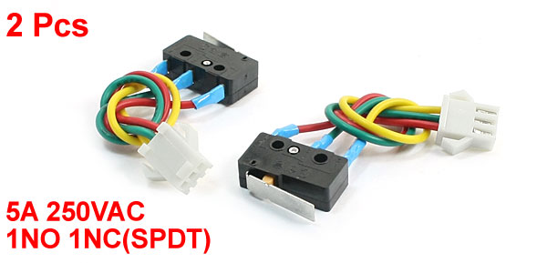 Product Name Micro Switch Rated Voltage & Current 5A 250VAC Contact Type 1NO 1NC(SPDT) Switch Body Size 2 x 1 x 0.6cm/ 0.7" x 0.4" x 0.2"(L*W*T) Lever Size 1.7 x 0.4cm/ 0.7" x 0.16"(L*W) Cable Length 8.3cm/ 3.2" Material(External) Plastic, Metal Color Black, Yellow, Red, Blue weight 11g Package Content 2 x Electrical Cooker Micro Switch(Non-OEM) - Reviews