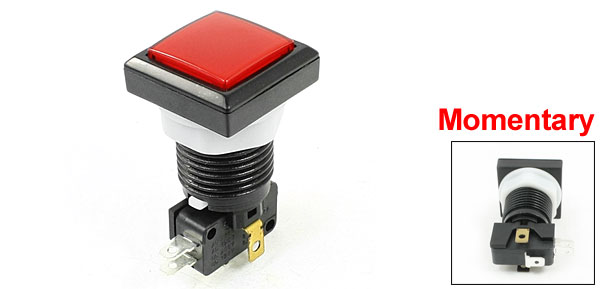 Product Name Push Button Switch Contact Type Momentary Action Type 1 NO, 1 NC SPDT Button Color Red Rated Voltage & Current 125V/250VAC 15A