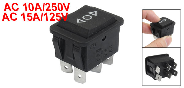 Item Name Rocker Switch Type On/Off/On (DPDT),Momentary Terminals 6 Pin Voltage & Current AC 10A/250V, AC 15A/125V Overall Size ~31 x 24 x 30mm / 1.2" x 0.94" x 1.1"(L*W*T) Mounting Hole Size 30 x 21.4mm / 1.1" x 0.8"(L*W) Color Black Material Plastic, Metal Total Net Weight 14g Package Content 1 x Rocker Switch - Reviews