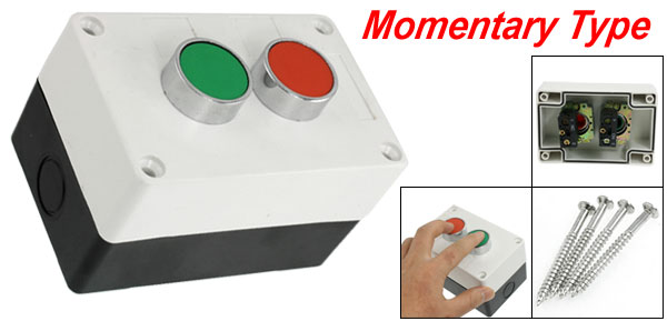 Product Name Push Button Station Action Type Momentary Contact Type NO NC Voltage AC 400V Current 10A Material Plastic, Metal Button Diameter 2.8cm/ 1.1" Overall Size(not include the button) 10.9 x 7.1 x 6.3cm/ 4.3" x 2.7" x 2.5" (L*W*H) Button Color White, Black, Green, Red Net Weight 227g Package Content 1 x Push Button Station - Reviews