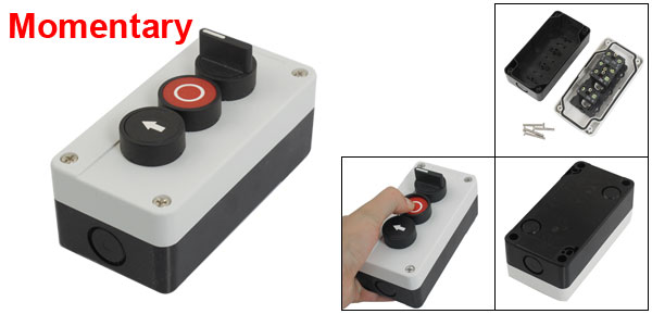 Selector Position 2 Ith 10A Ui 600V AC-15 240V 3A Uimp 6kV Terminal Number 8 Mounting Hole Diameter 8mm / 5/16" Hole Distance(center to center) 118 x 51mm / 4.6" x 2"(L*W) Total Size (Approx.) 132 x 65 x 71m / 5.2" x 2.6" x 2.8" (L*W*T) Button Color Black, Red Weight 227g Package Content 1 x Push Button Switch Station - Reviews