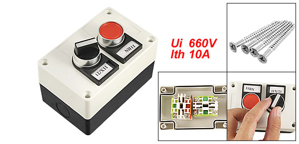 Product Name Push Button Station Ui 660V Ith 10A IEC 337 Material Plastic, Metal Overall Size(not include the button) 10.8 x 7 x 6.3cm/4.2'' x 2.7'' x 2.5'' (L*W*H) Overall Height 9cm / 3.5" Color Green, Black, White Net Weight 208g Package Content 1 x Push Button Station - Reviews
