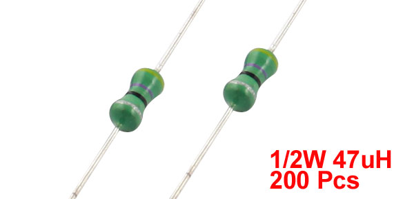 Product Name Color Ring Inductor Inductance Tolerance 10%(K) Inductance 47uH Power 1/2W Material Epoxy Resin, Metal, Inductor Body Size 4mm x 10mm / 0.16" x 0.39"(Max.D*L) Lead Diameter 0.5mm / 0.02" Total Length 6cm / 2.4" Weight 70g Package Content 200(+/-2%) x Color Ring Inductor - Reviews