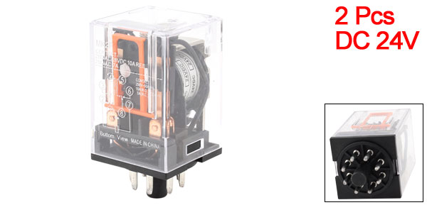Product Name Power Relay Model No. MK2P Coil Voltage DC 24V Contact Capacity AC 250V 7A Type DPDT(2NO 2NC) Pin Quantities 8 Pin Size 10 x 2mm/0.4" x 0.08"(L*D) Overall Size (Approx.) 35 x 35 x 65mm/1.4" x 1.4" x 2.6"(L*W*H) Shell Material Plastic, Metal Main Color Clear, Black Net Weight 132g Package Content 2 x Power Relay - Reviews