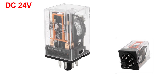 Product Name Power Relay Model No. MK2P/ Coil Voltage DC 24V Contact Capacity AC 250V 7A Type DPDT(2NO 2NC) Pin Quantities 8 Pin Size 10 x 2mm/0.4" x 0.08"(L*D) Overall Size (Approx.) 35 x 35 x 65mm/1.4" x 1.4" x 2.6"(L*W*H) Shell Material Plastic, Metal Main Color Clear, Black Net Weight 66g Package Content 1 x Power Relay - Reviews