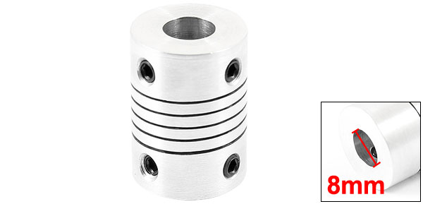 Product Name Beam Coupling Features Screw Type(Coiling Clamping) Shaft Usage 8mm to 8mm / 0.31" to 0.31"(5/16" to 5/16") Length 25mm / 0.98" Diameter 18mm / 0.71" Material Aluminum Alloy Color Silver Tone Weight 13g Package Content 1 x Beam Coupling - Reviews