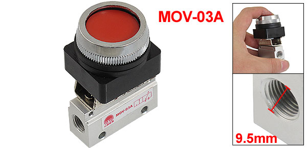 MOV-03A 9.5mm Thread 3/2 Way Red Flat Push Button Pneumatic Mechanical Valve