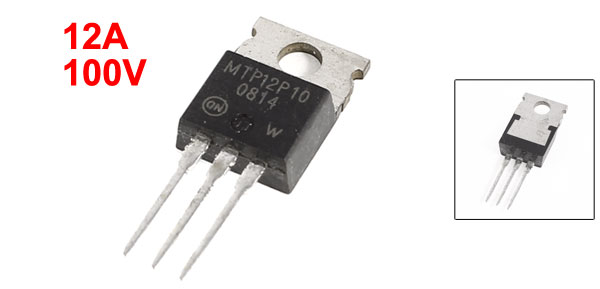 Product Name Mosfet Transistor Model No. MTP12P10 Mounted Type Through Hole Current 12A Voltage 100V Mounting Hole Diameter 3mm / 0.12" Pin Size 13 x 3mm / 0.51" x 0.12" ( L* Pitch) Total Size 28 x 10 x 5mm / 1.1" x 0.39" x 0.20" (L*W*T) Main Material Silicon Main Color Black, Silver Tone Weight 3g Package 1 x Mosfet Transistor  - Reviews