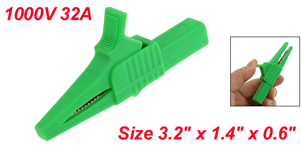 Product Name Multimeter Alligator Clip Application Electrical Test Work Alligator Clip Size 8.3 x 3.7 x 1.5cm / 3.2" x 1.4" x 0.6"(L* W*T) Plug Size 4mm / 0.16" Maximum Jaw Width 3cm / 1.2" Rating Voltage 1000V Rating Current 32A Color Green Material Metal & Plastic Weight 14g Package 1 x Multimeter Alligator Clip - Reviews