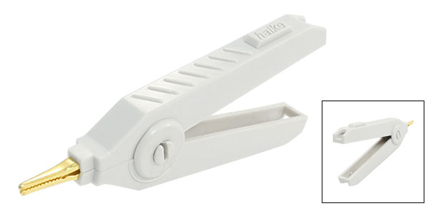 DetailsMultimeter Spring Loaded Gray Insulation Brass Mouth Alligator Clip  Product Name Alligator Clip Design Pointed Mouth Application Electrical Test Work Alligator Clip Size 90 x 37 x 14mm / 3.5" x 1.5" x 0.55"(L* W*T) Max. Jaw Width 12mm / 0.47" Color Gray Material Metal, Brass, Plastic Weight 17g Package 1 x Pointed Mouth Alligator Clip